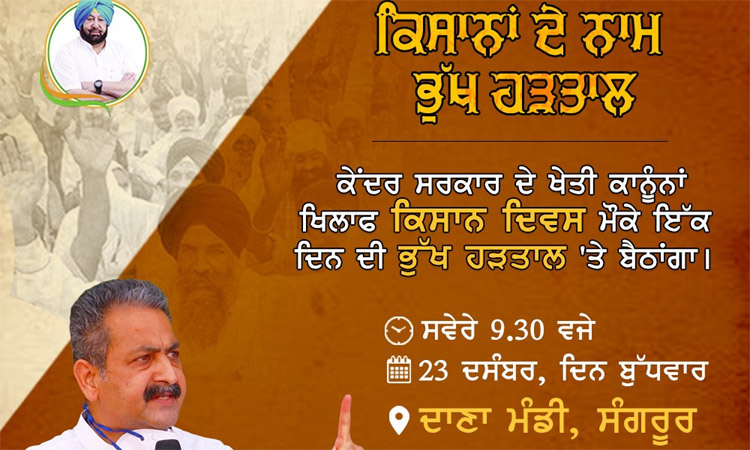 ਕਿਸਾਨਾਂ ਨਾਲ ਇੱਕਜੁਟਤਾ ਦਾ ਪ੍ਰਗਟਾਵਾ ਕਰਦਿਆਂ ਵਿਜੈ ਇੰਦਰ ਸਿੰਗਲਾ ਭੁੱਖ ਹੜਤਾਲ ‘ਤੇ ਬੈਠਣਗੇ